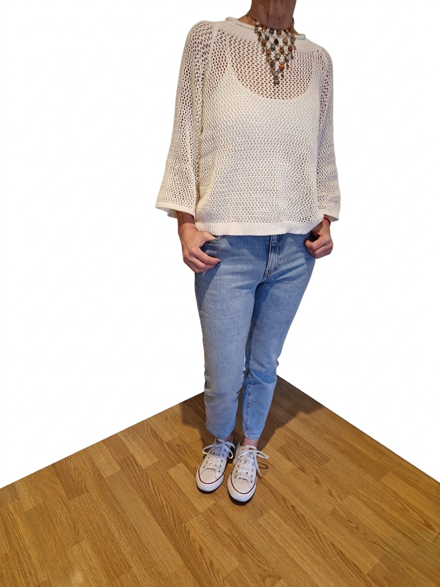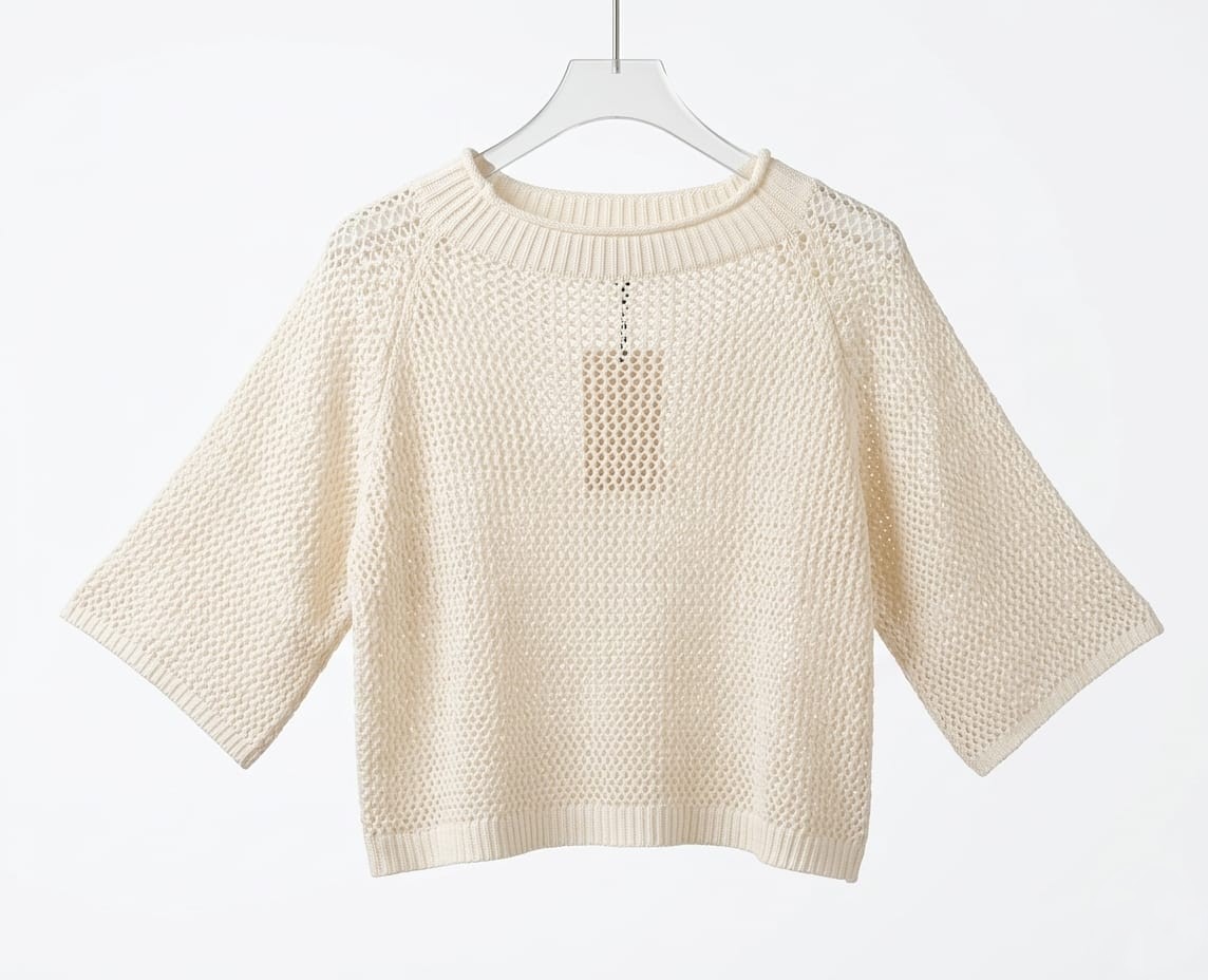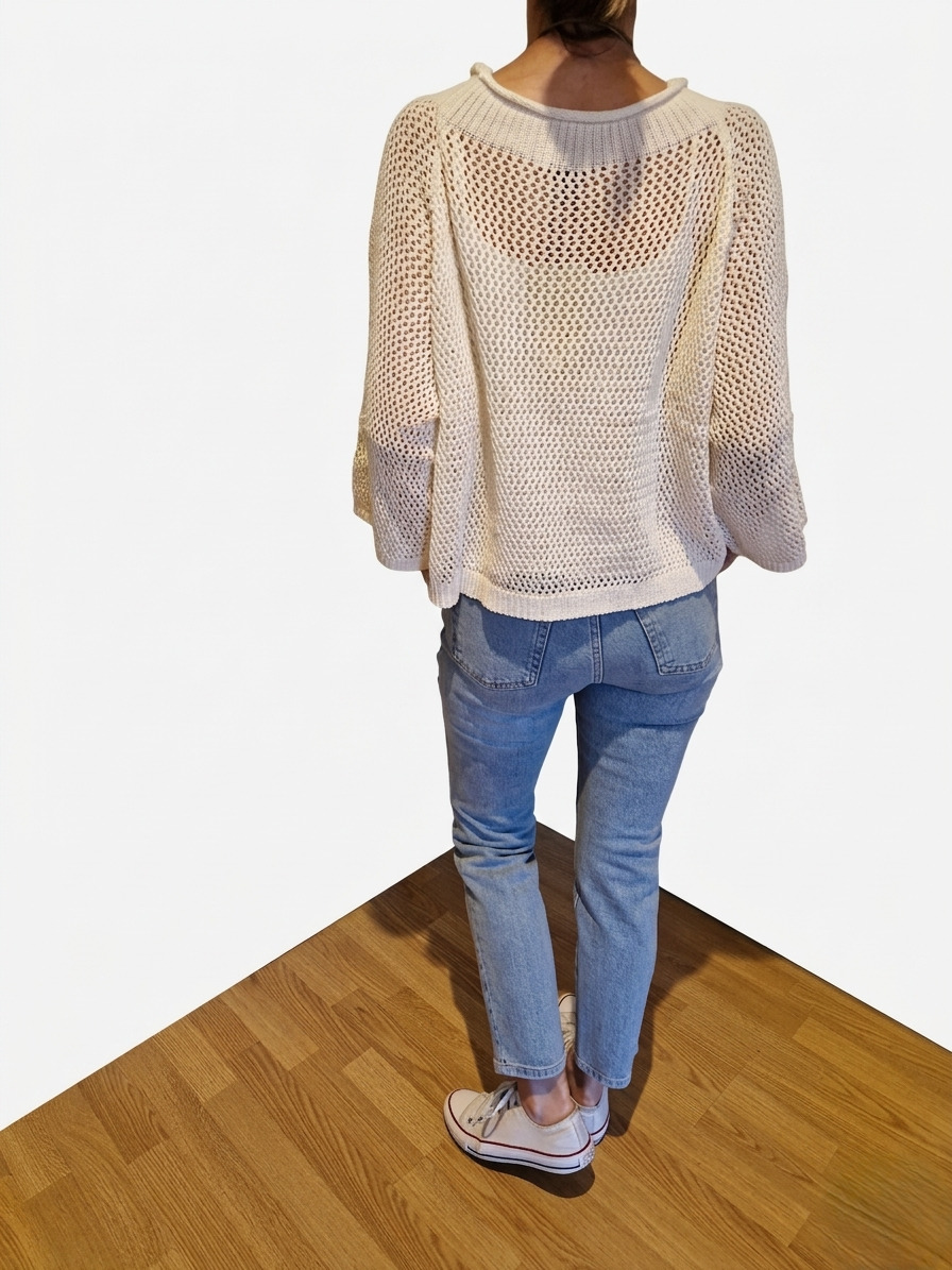 Jersey de punto de red, cuello redondo acanalado y manga murciélago te aportará una ligereza ideal para crear looks con capas durante la primavera o las noches de verano.