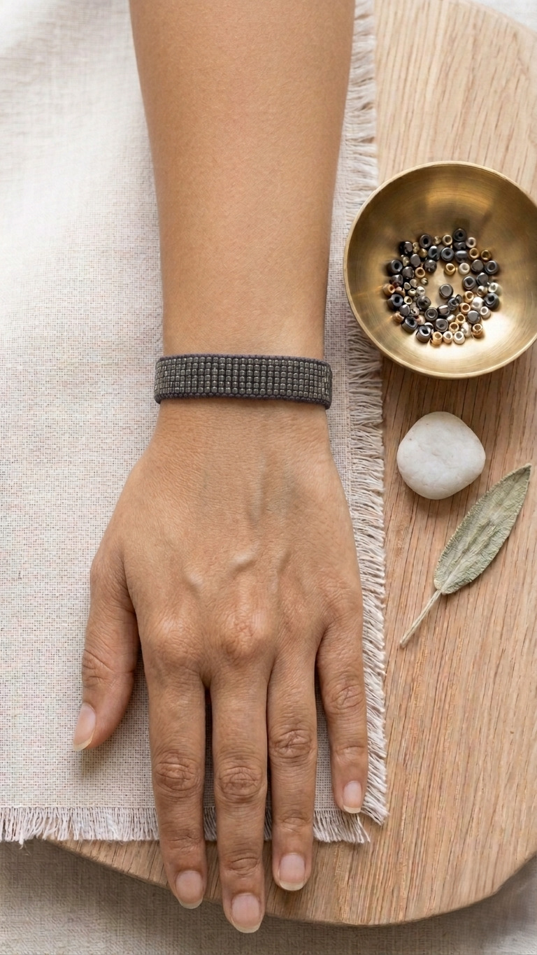 Pulsera tejidas a mano con un hilo especial y altísima resistencia, gracias a la perfección cilíndrica de los cristales japoneses. Abraza tu muñeca con la suavidad de una tela pero con la luz de una joya, es tan cómoda que te olvidaras que la llevas puesta, pero tan espectacular que los demás no podrán dejar de mirarla.